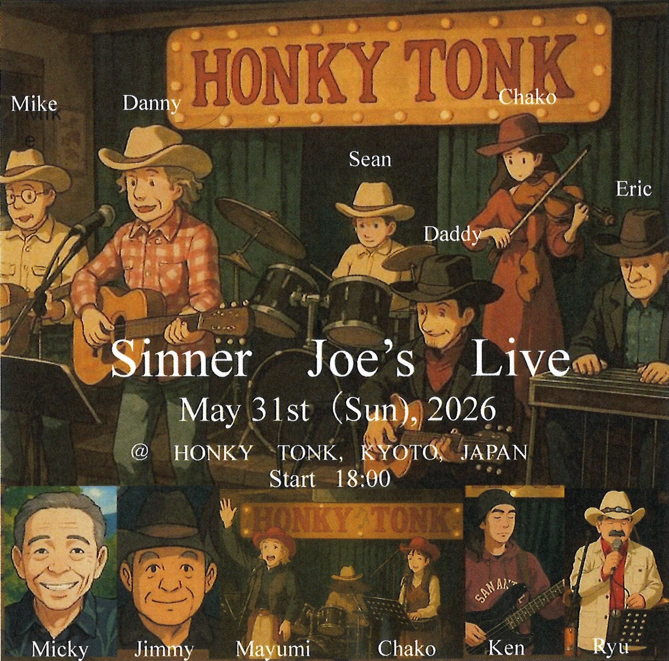 | ●シナー・ジョーズ/ライブ情報 ■ライブ情報 ライブスケジュール 2026.5.31 日曜日 18時開演 京都市左京区 宝ヶ池 ホンキートンク ℡075-701-8015 〇ご来場お待ちしています ご予約は電話で・・ |